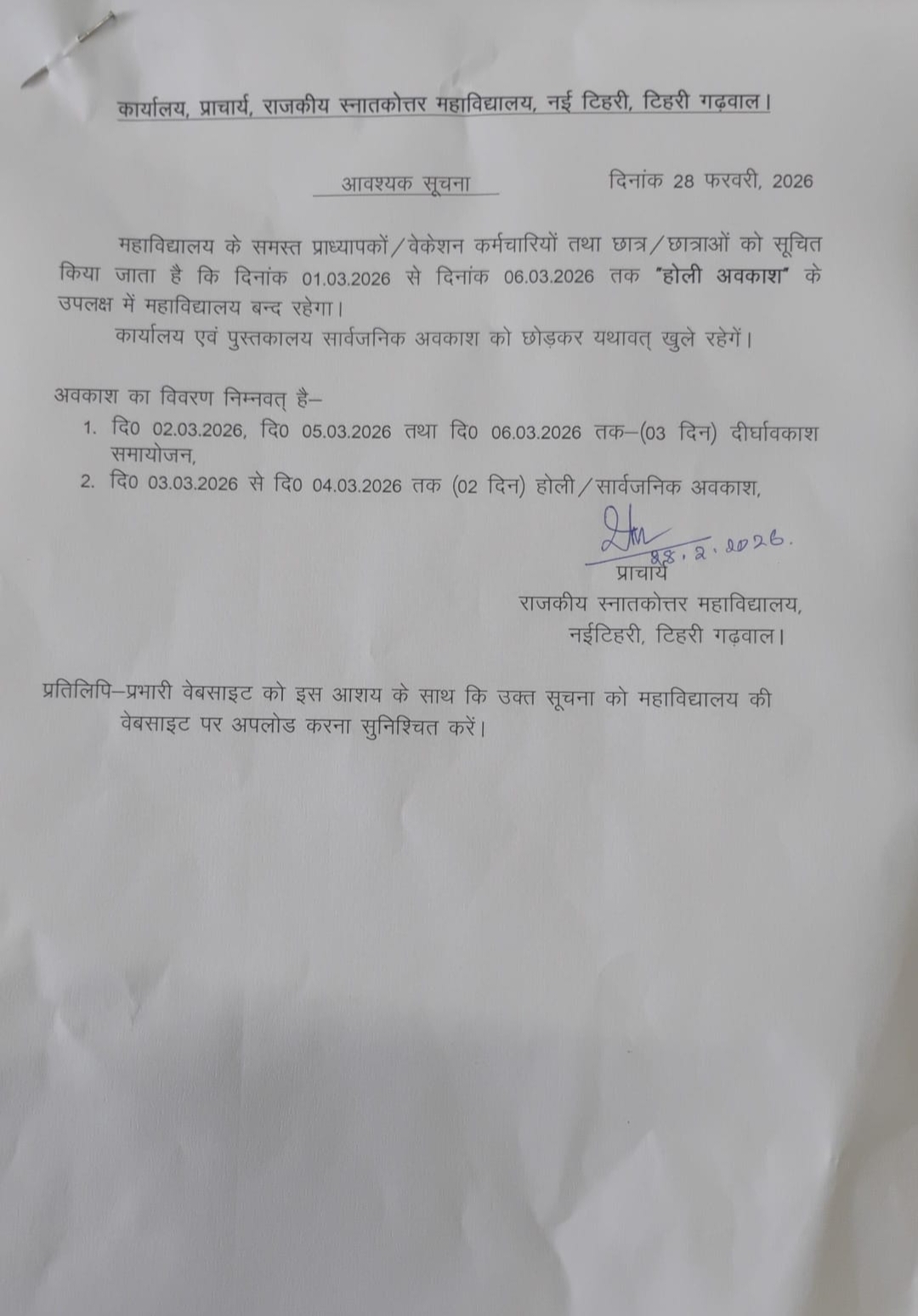 25 FEB | Notice regarding Mahashivratri holiday |