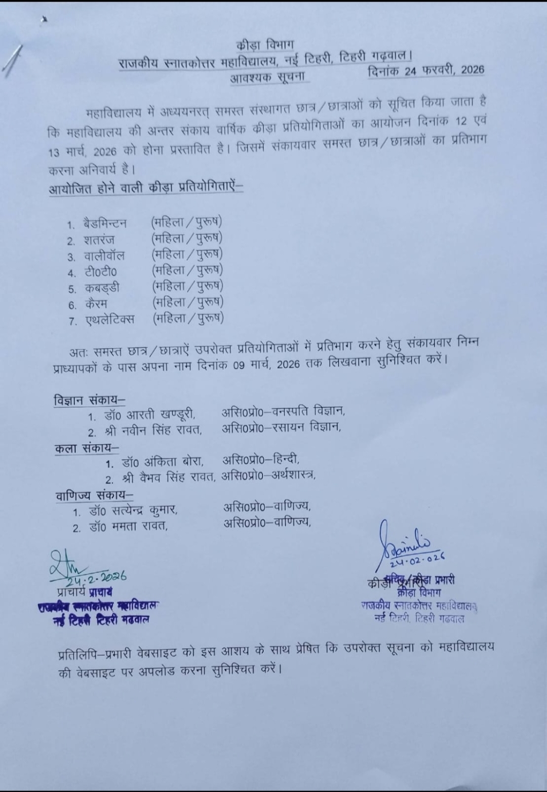 24 FEB | Notice for students to participate in Annual sports Day competition |