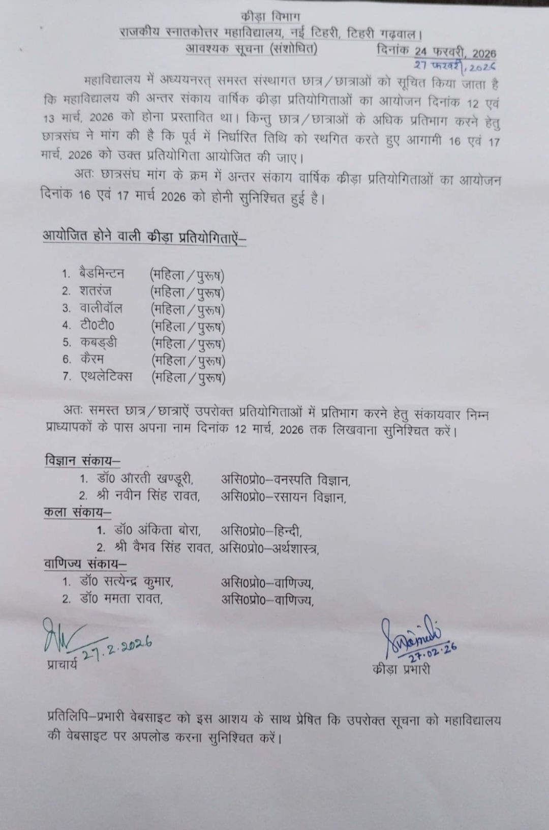 23 SEP | Notice regarding Inter college sports competition |