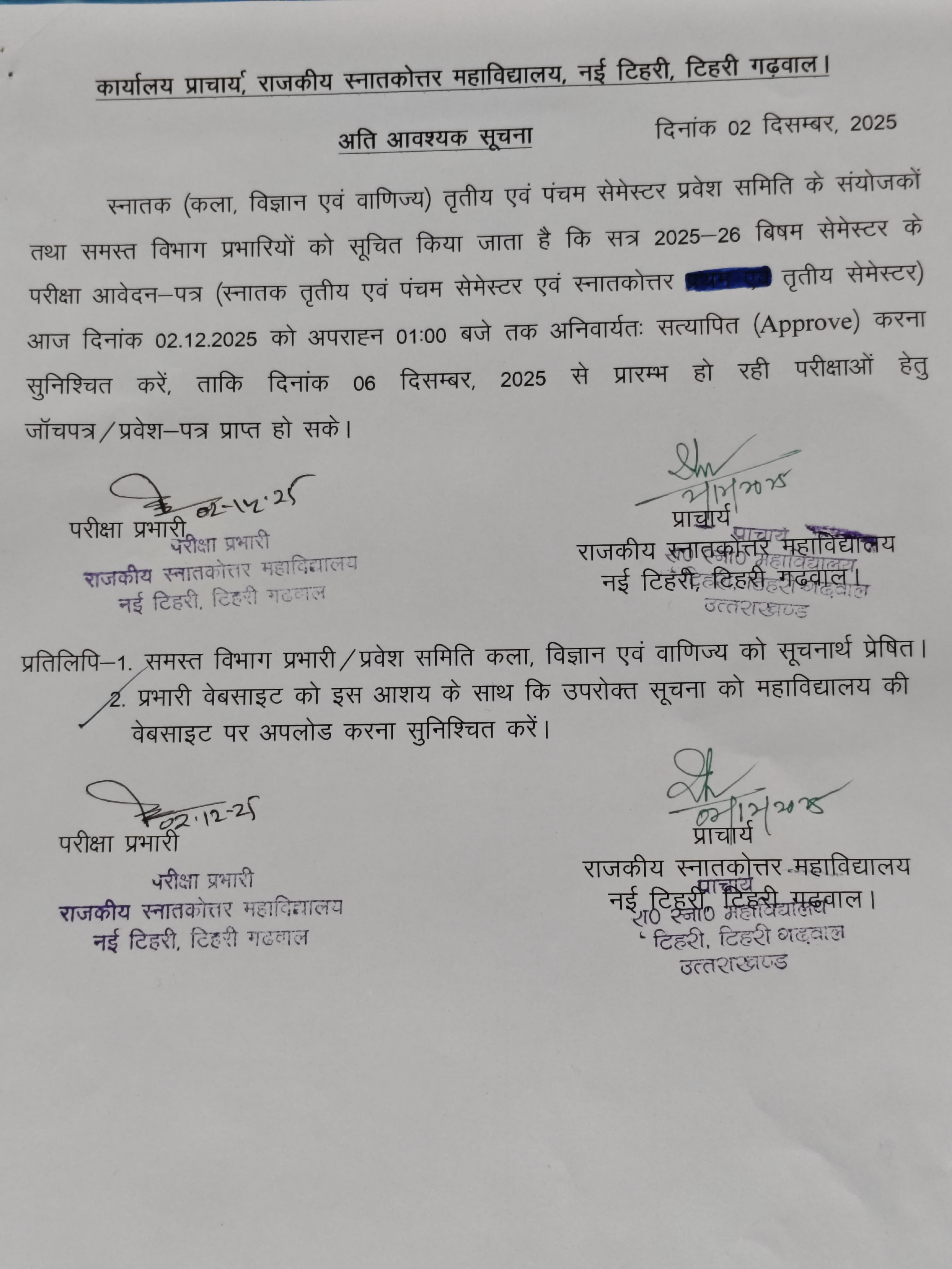 20 DEC | Information for all Teaching and Non-Teaching Staff regarding visit of CHIEF MINISTER in New Tehri Town on December 26, 2023 |