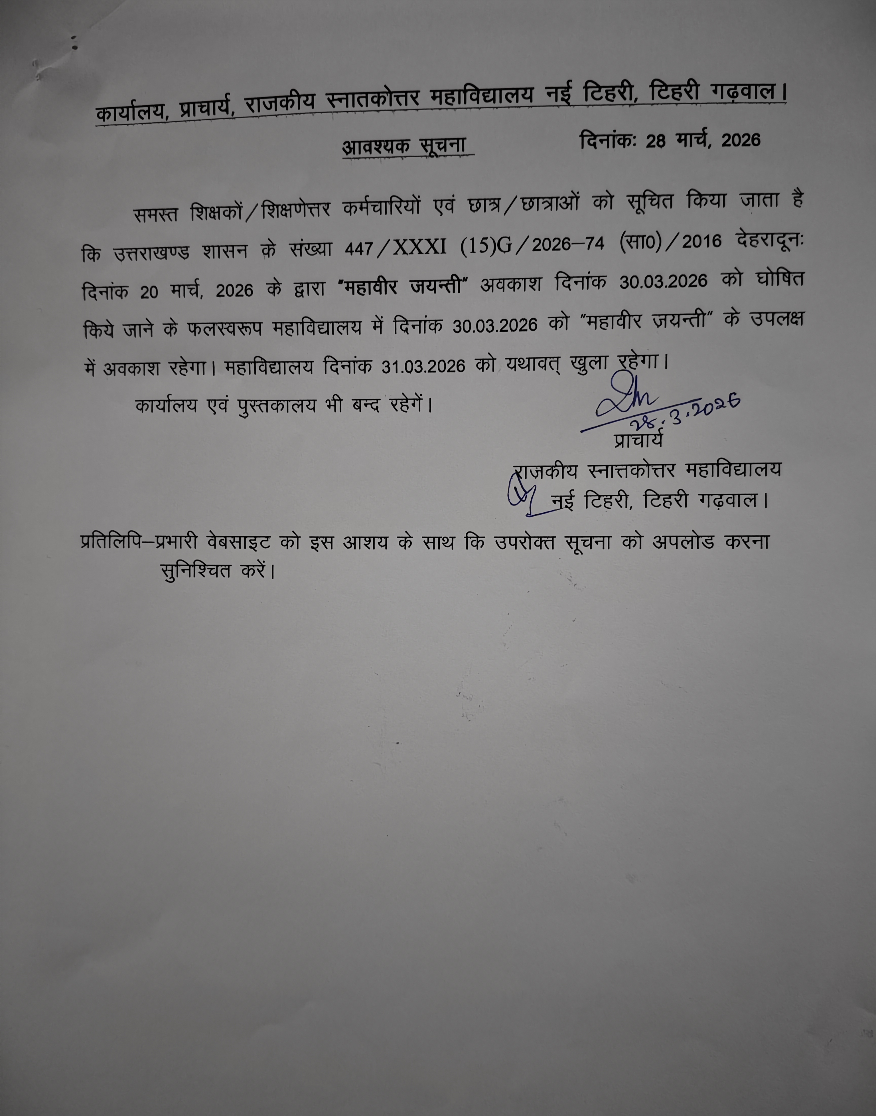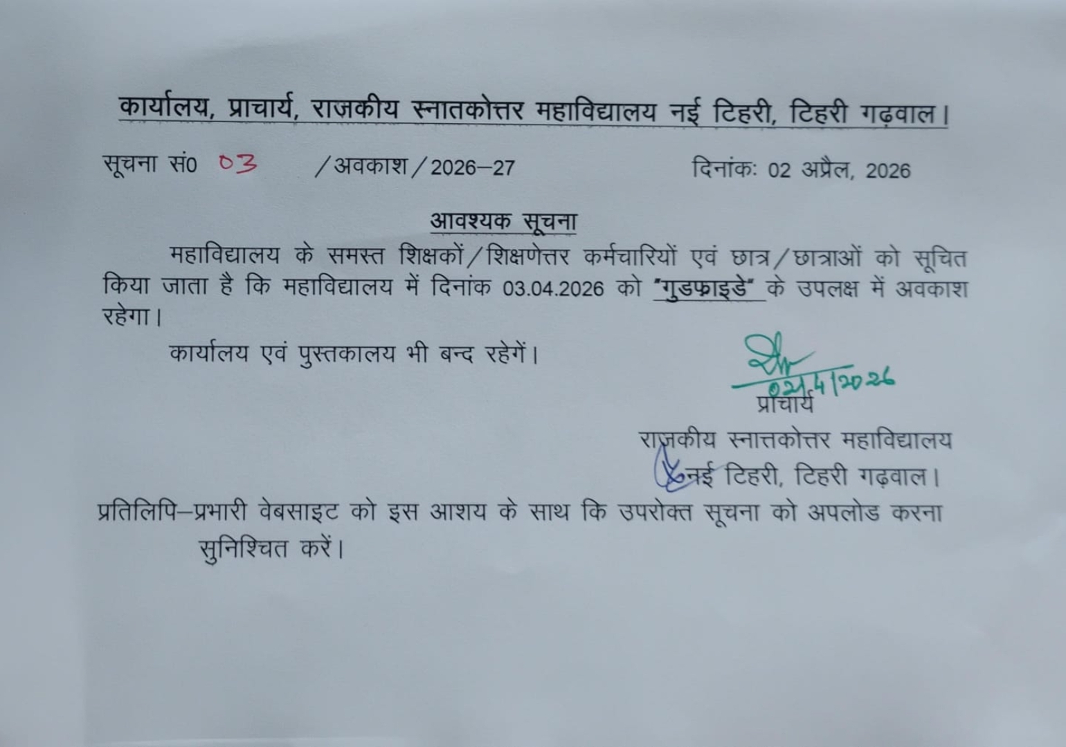 26 MAR | College holiday on 26th March 2026 |
